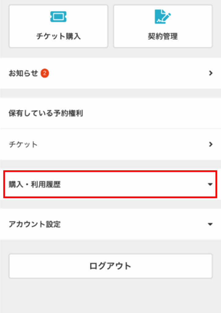 ①マイページから【購入・利用履歴】をタップします