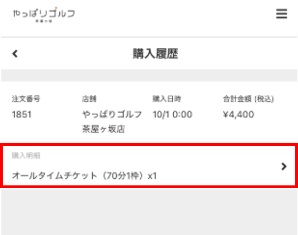 ②領収書を出力したい購入明細を選択します