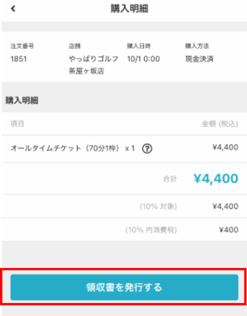③画面下部に表示される【領収書を発行する】ボタンをタップします