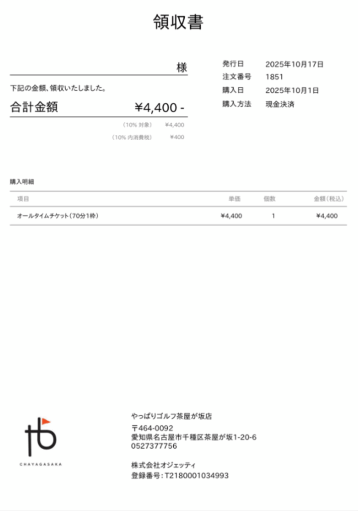 ④別ウィンドウで領収書のPDFデータが発行されます。